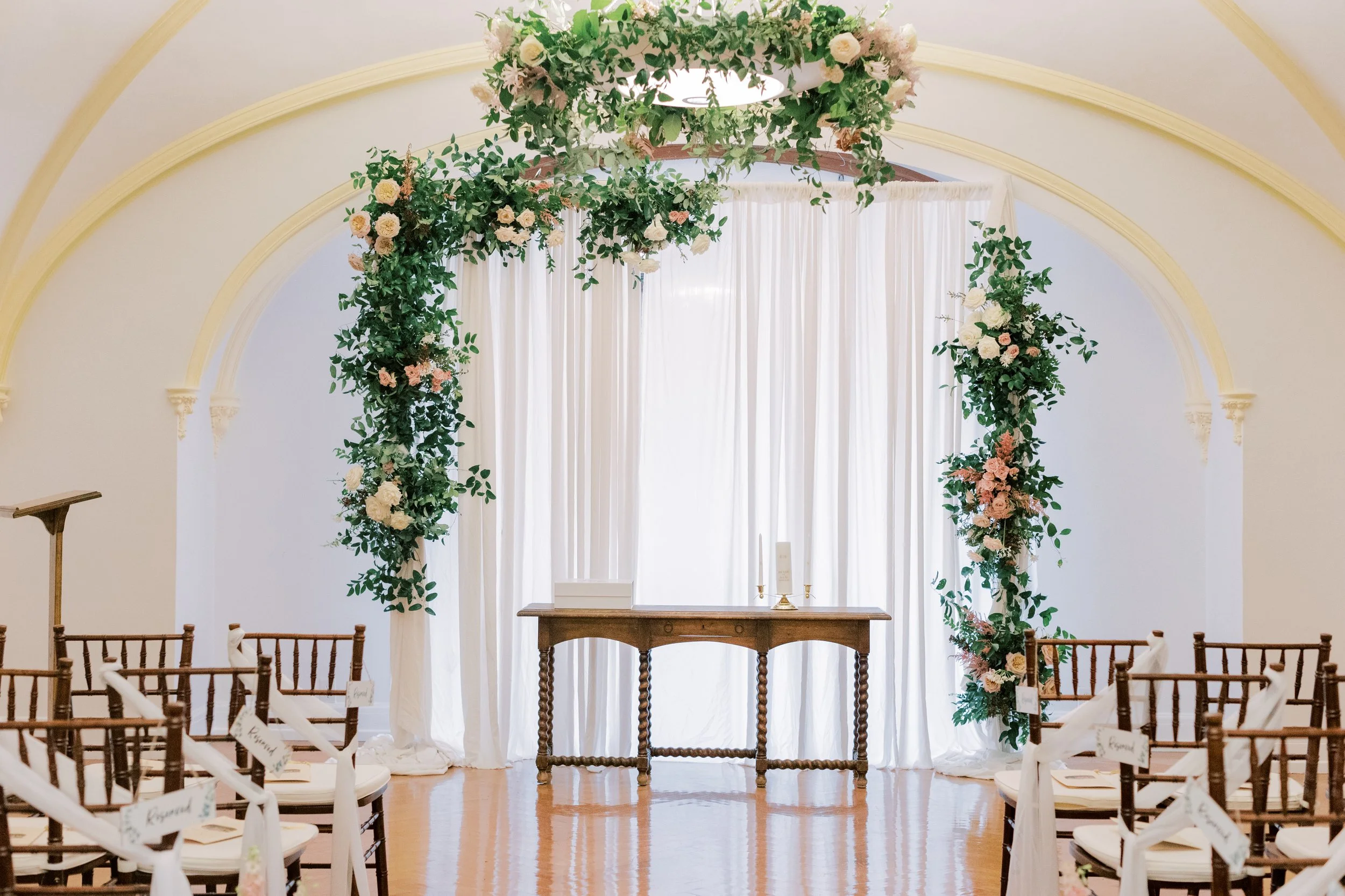 Wedding Planner & Designer: Plum & Poppy Weddings Venue: Laurel Hall Getting Ready Location: Hotel Carmichael Hair & Makeup: Something Blue Stylists Caterer: Ritz Charles Florist: Satin & Stems Band: Cocktail Sax DJ: DJ Sound Solution Videographer: Camden & Claire Bakery: Cake Bake Shop Transportation: Antique Limo of Indianapolis Ceremony Musicians: Candlewood Strings Detail Photos: Katherine Mei Photography